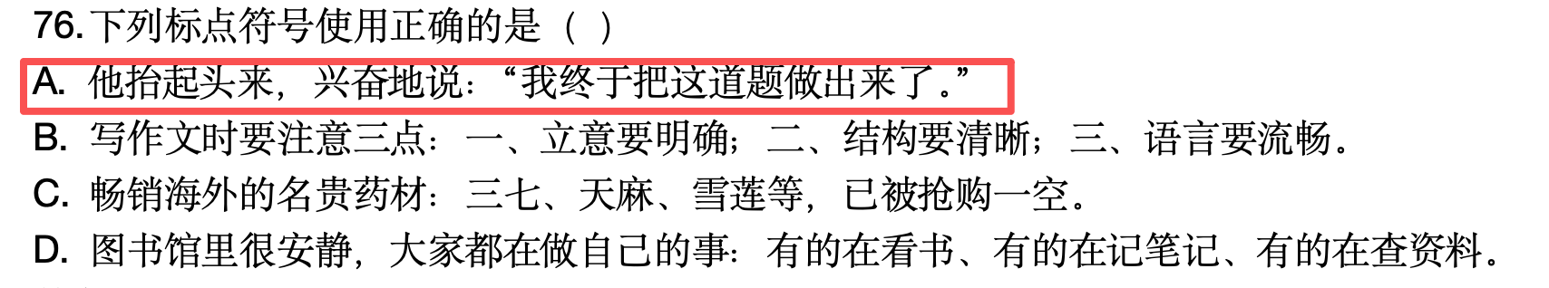 原題:79. 下列句子中,標(biāo)點(diǎn)符號(hào)使用正確的是( )。