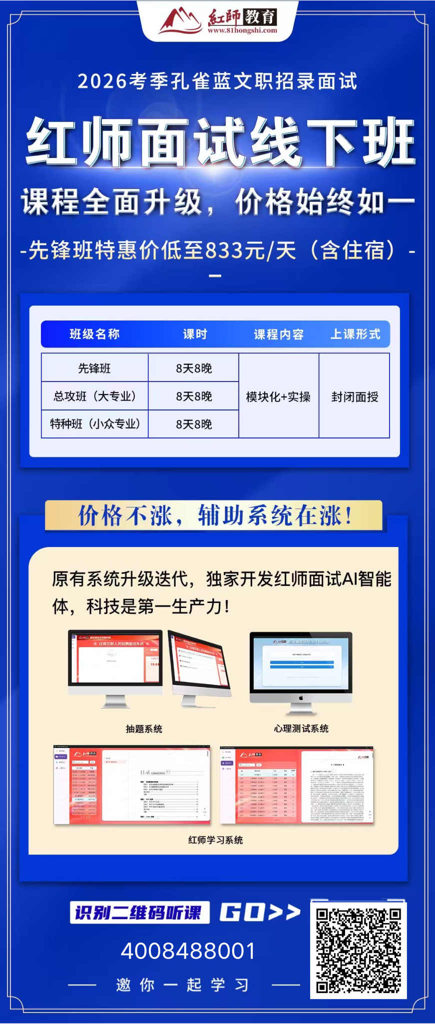 大家知道,紅師教育在軍隊文職培訓(xùn)深耕多年,紅師學(xué)員接連好評,尤其是在軍隊文職面試培訓(xùn)環(huán)節(jié)中。