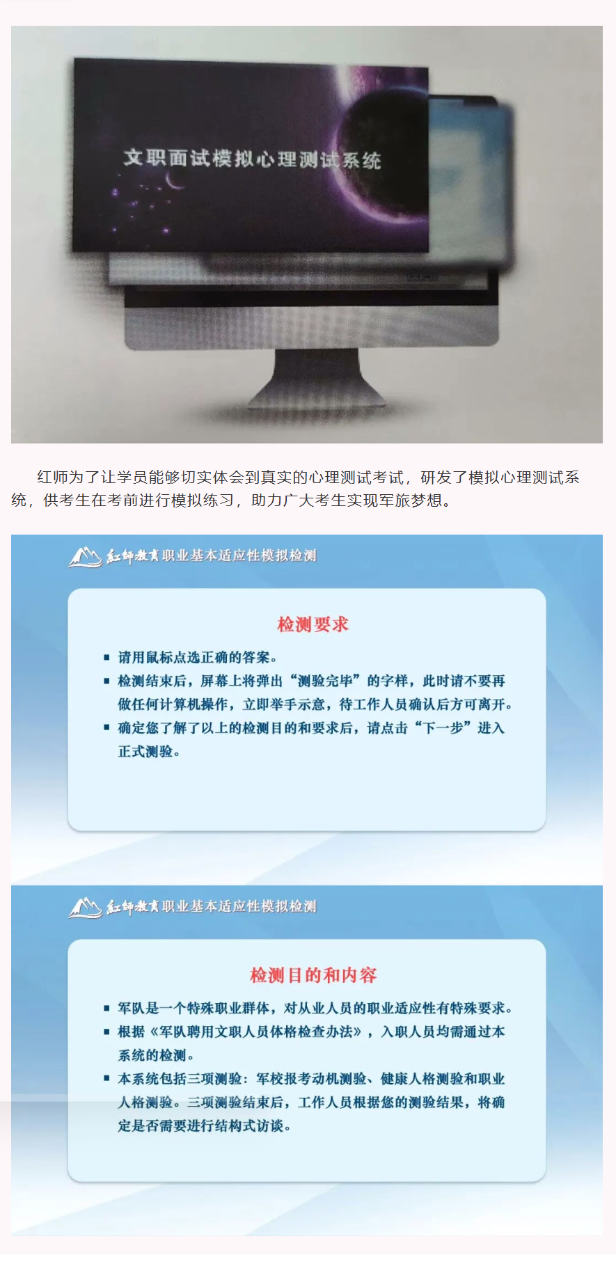 相信很多人都聽說過軍隊文職體檢時有一個心理測試考核,有的同學對此系統頭痛不已,這是為何呢?今天我們就來了解一下心理檢測系統。