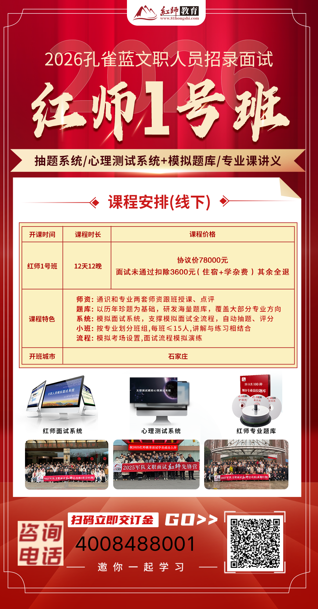 ?紅師2026孔雀藍(lán)文職面試線下集訓(xùn)1號(hào)班來啦!
