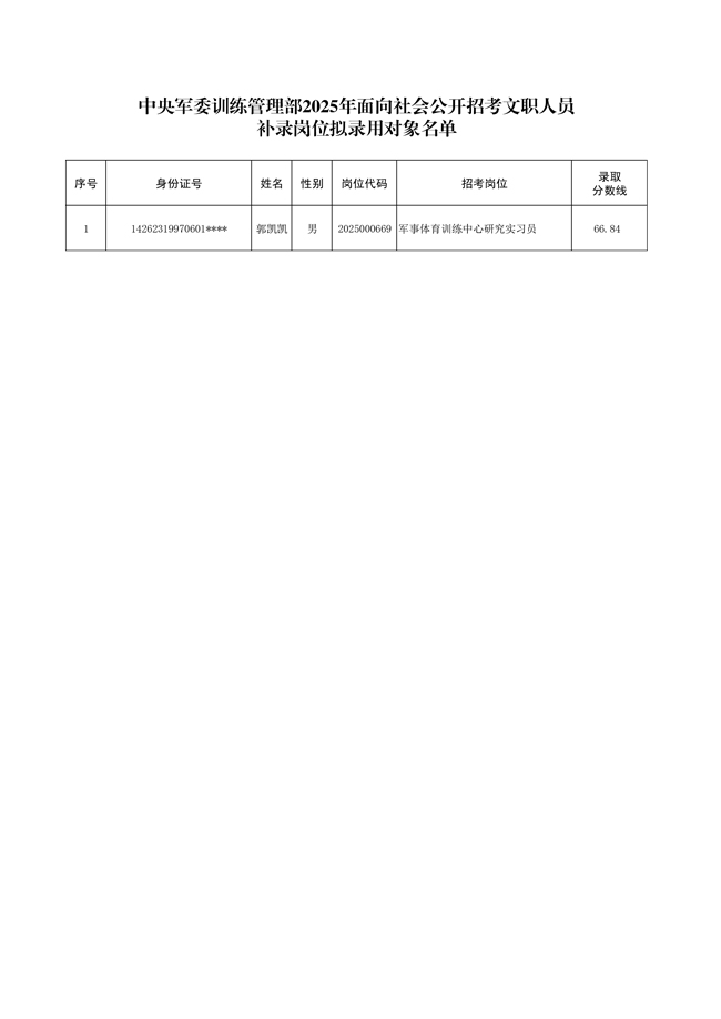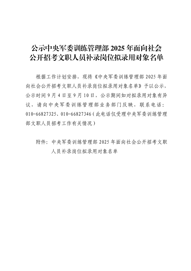 原文標(biāo)題:公示中央軍委訓(xùn)練管理部2025年面向社會公開招考文職人員補(bǔ)錄崗位擬錄用對象名單