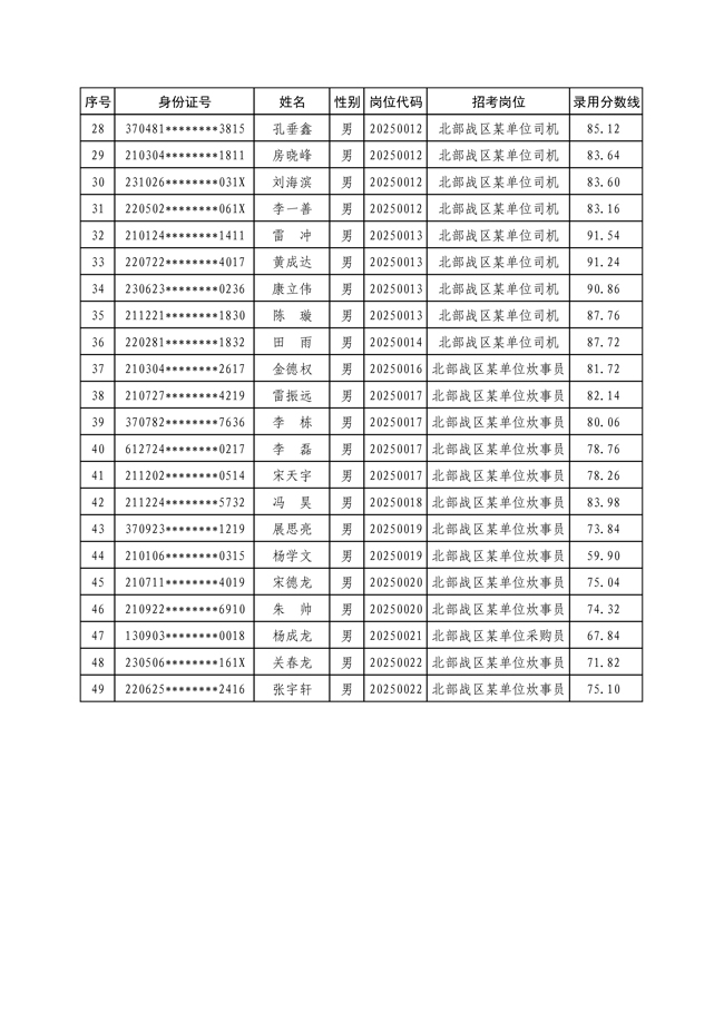 2025年武裝部文職人員擬錄用名單(含上岸分?jǐn)?shù)線) 2025-10-09