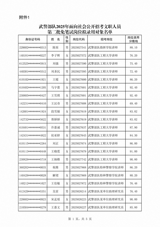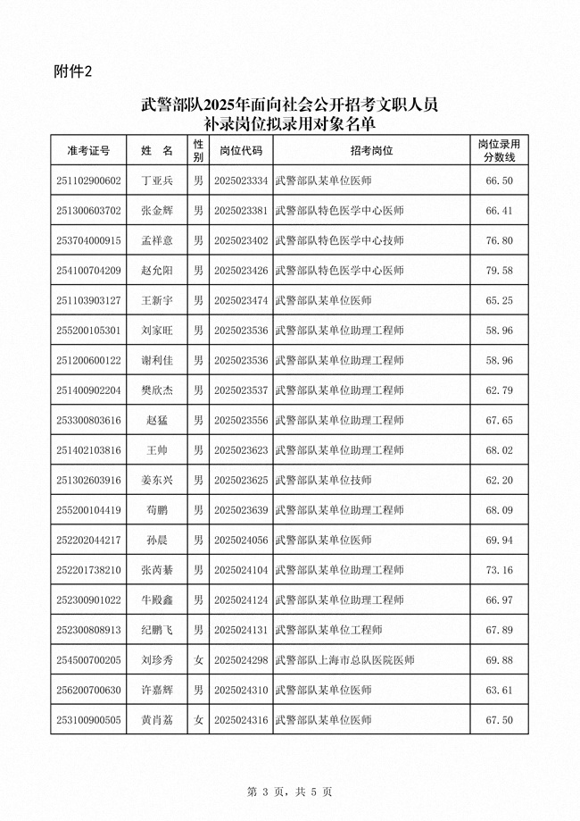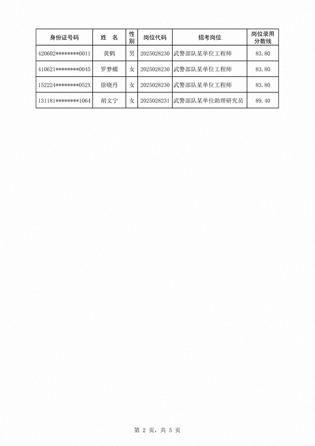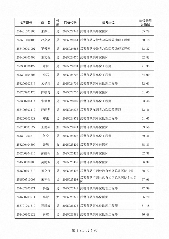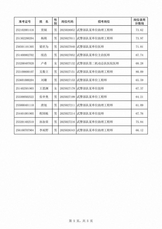 2025年武裝部文職人員擬錄用名單(含上岸分?jǐn)?shù)線) 2025-10-09