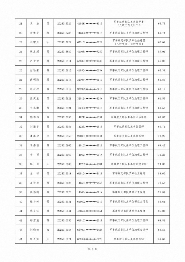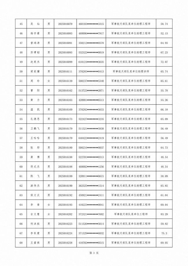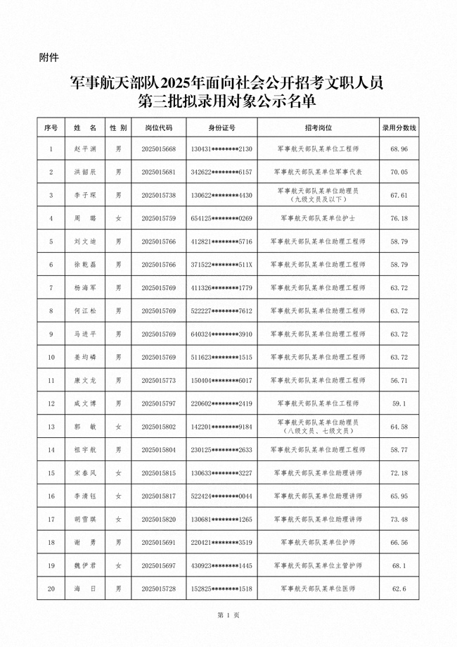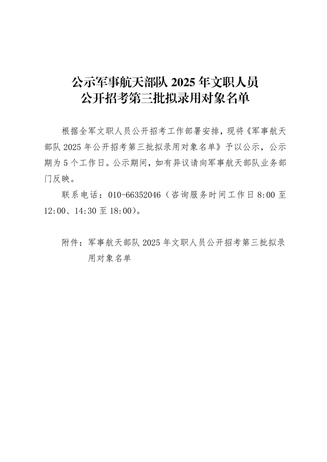 原文標(biāo)題:公示軍事航天部隊(duì)2025年文職人員公開(kāi)招考第三批擬錄用對(duì)象名單