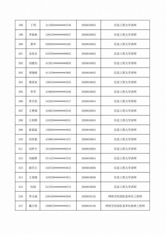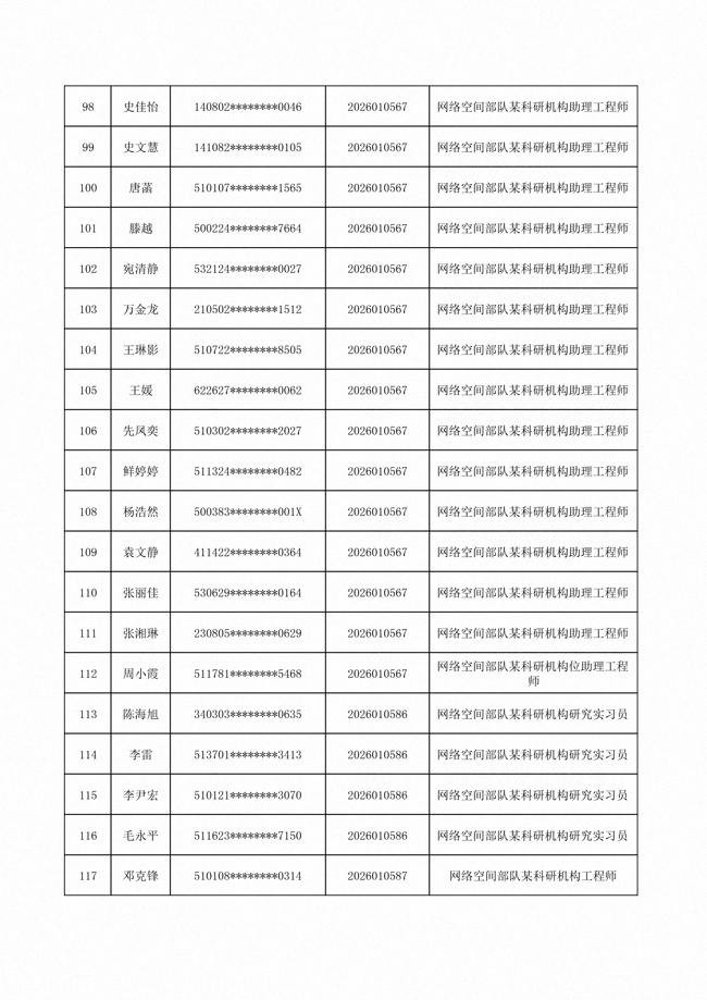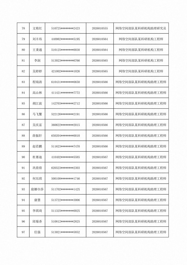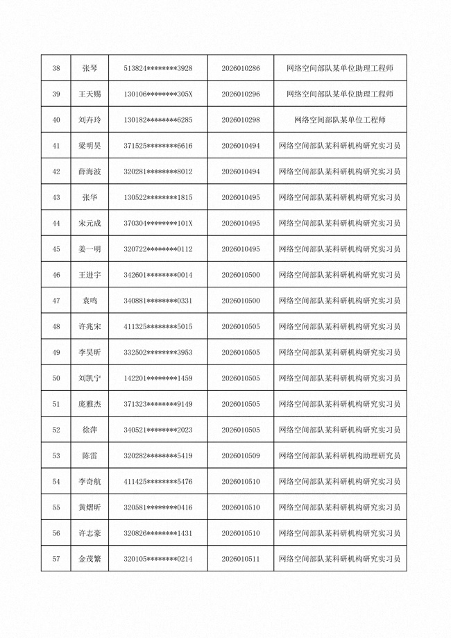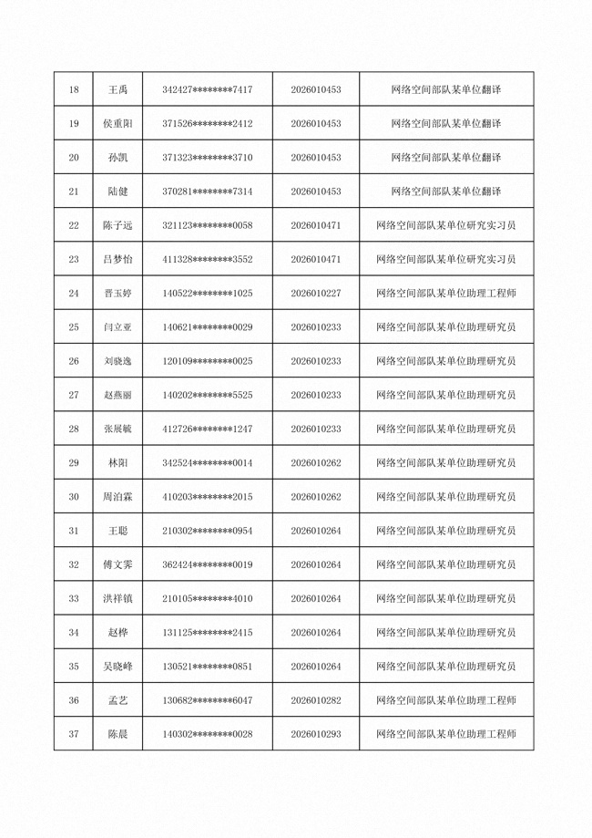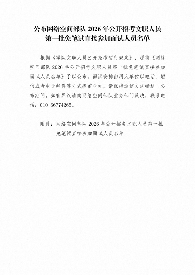 原文標(biāo)題:公布網(wǎng)絡(luò)空間部隊(duì)2026年公開招考文職人員第一批免筆試直接參加面試人員名單