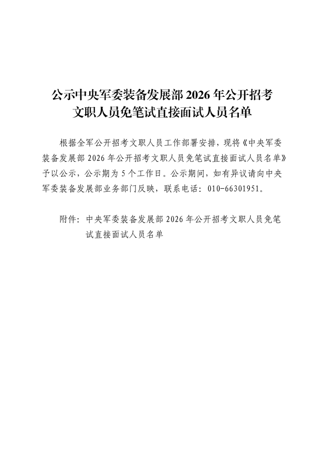 原文標(biāo)題:公示中央軍委裝備發(fā)展部2026年公開招考文職人員免筆試直接面試人員名單