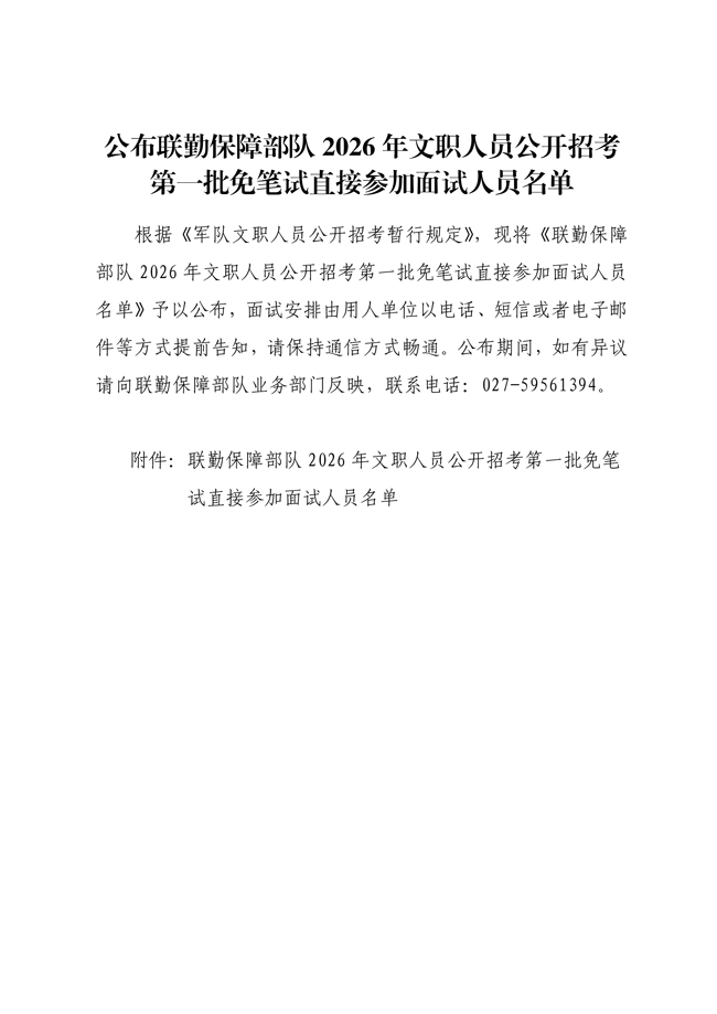 原文標(biāo)題:公布聯(lián)勤保障部隊(duì)2026年文職人員公開招考 第一批免筆試直接參加面試人員名單