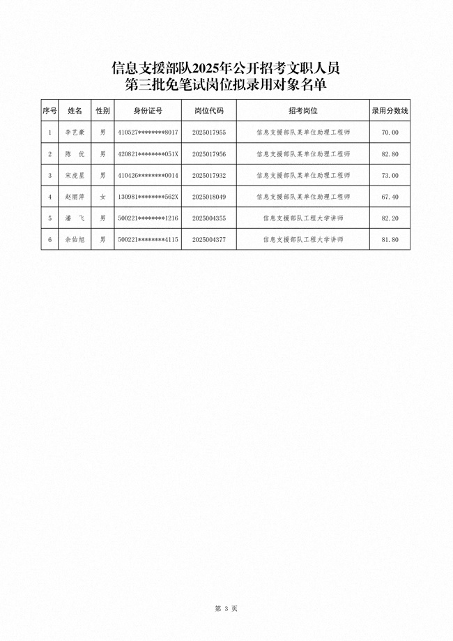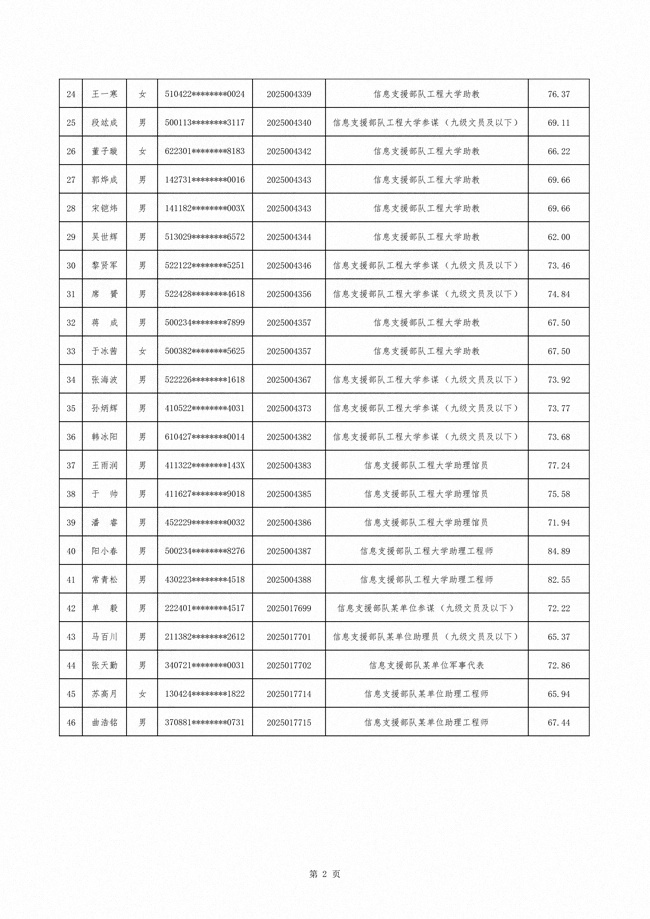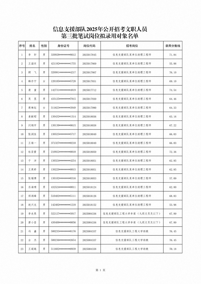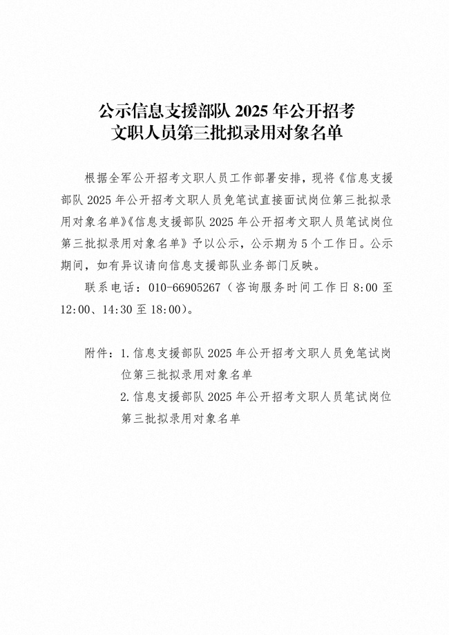 原文標(biāo)題:公示信息支援部隊(duì)2025年公開(kāi)招考 文職人員第三批擬錄用對(duì)象名單