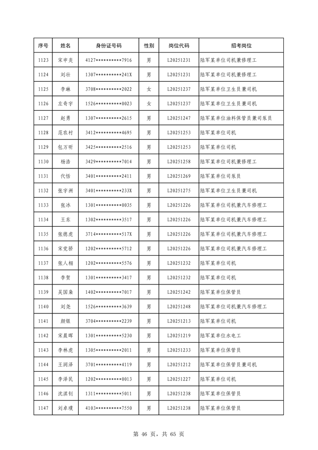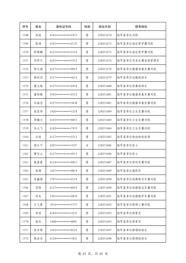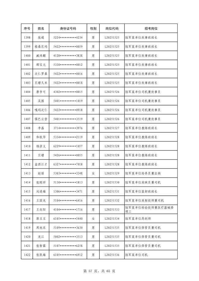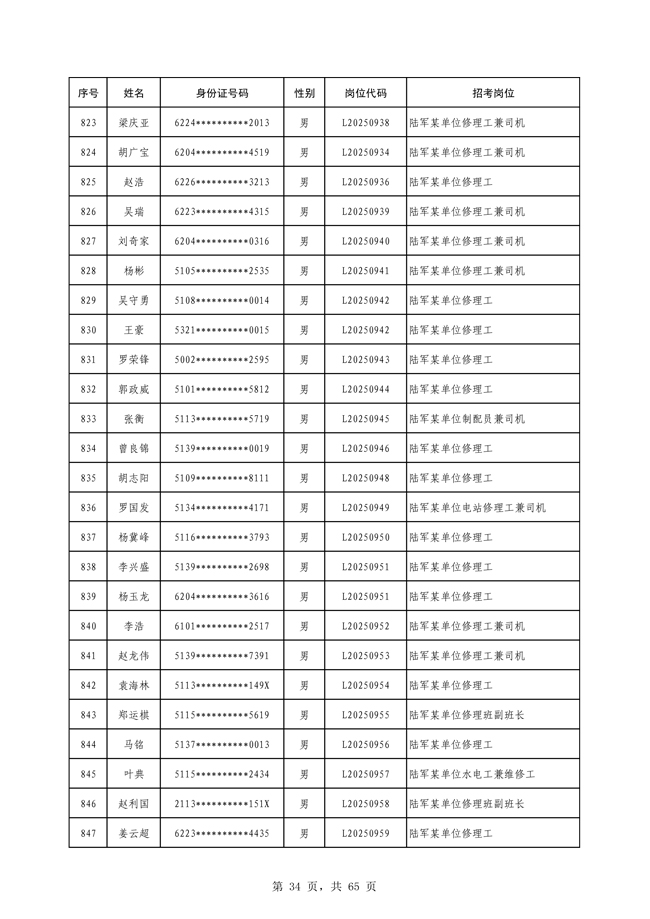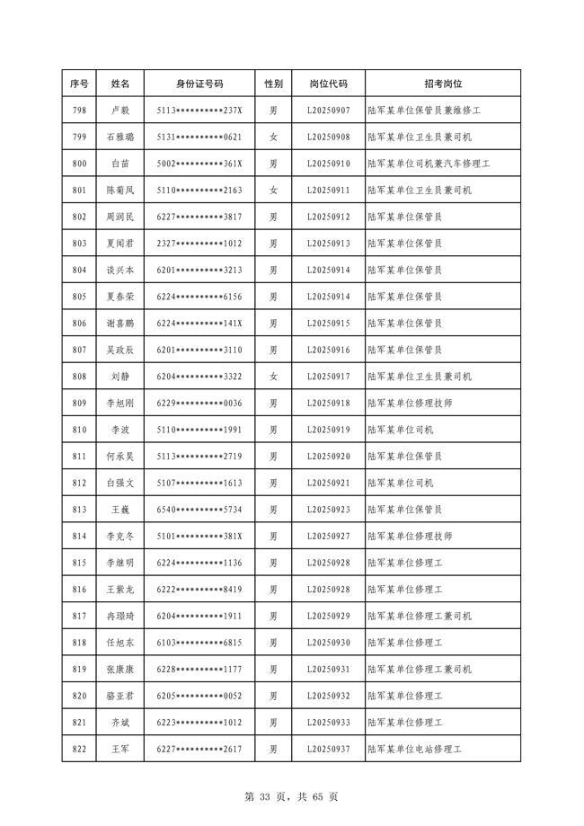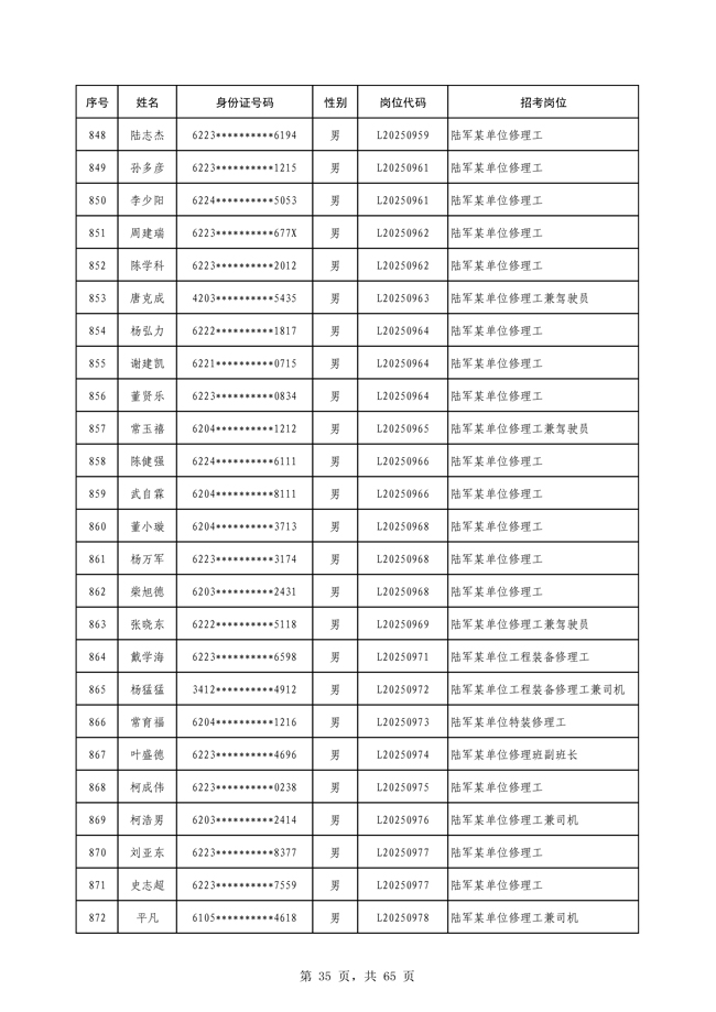 原文標題:公示2025年度陸軍公開招考專業(yè)技能類文職人員第一批擬錄用對象名單