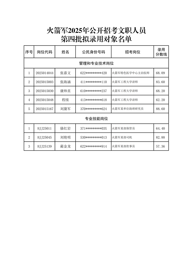 原文標(biāo)題:2025年火箭軍公開招考文職人員第四批擬錄用對(duì)象8人