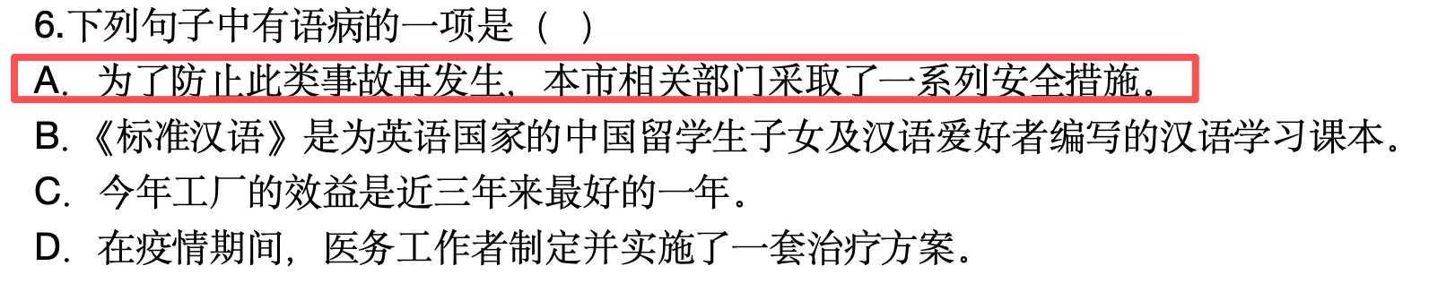 原題:68. 下列句子沒有語病的一句是( )。