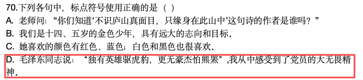 原題:79. 下列句子中,標(biāo)點符號使用正確的是( )。
