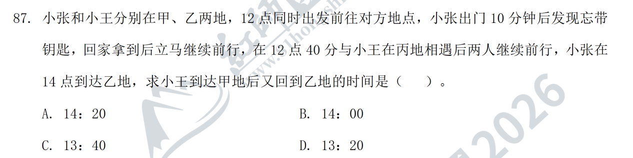 2026藍(lán)軍卷五第87題(都是相遇追及問題,都可以用正反比求解,解題方法差不多)