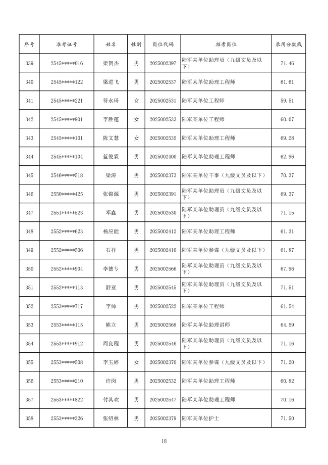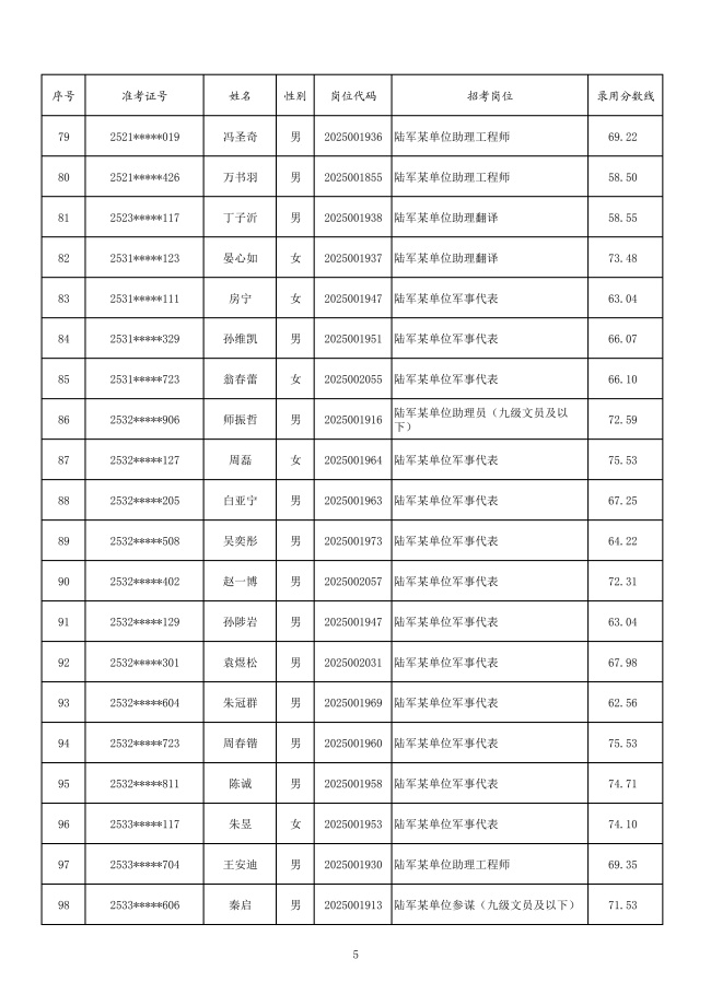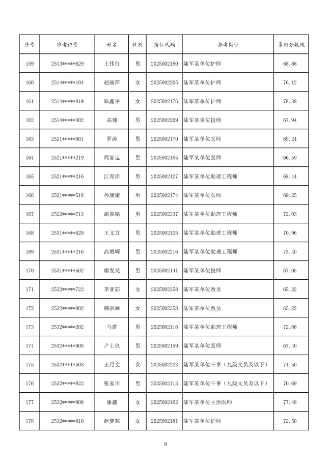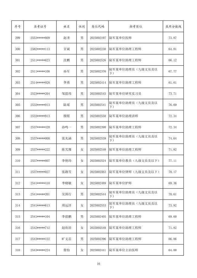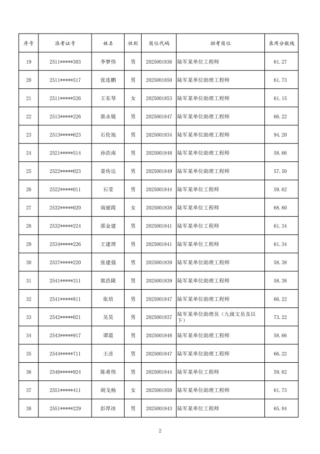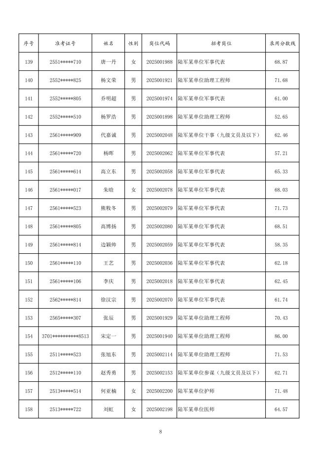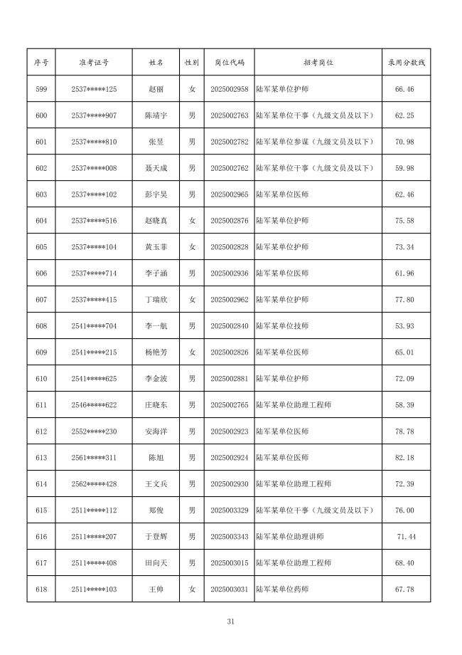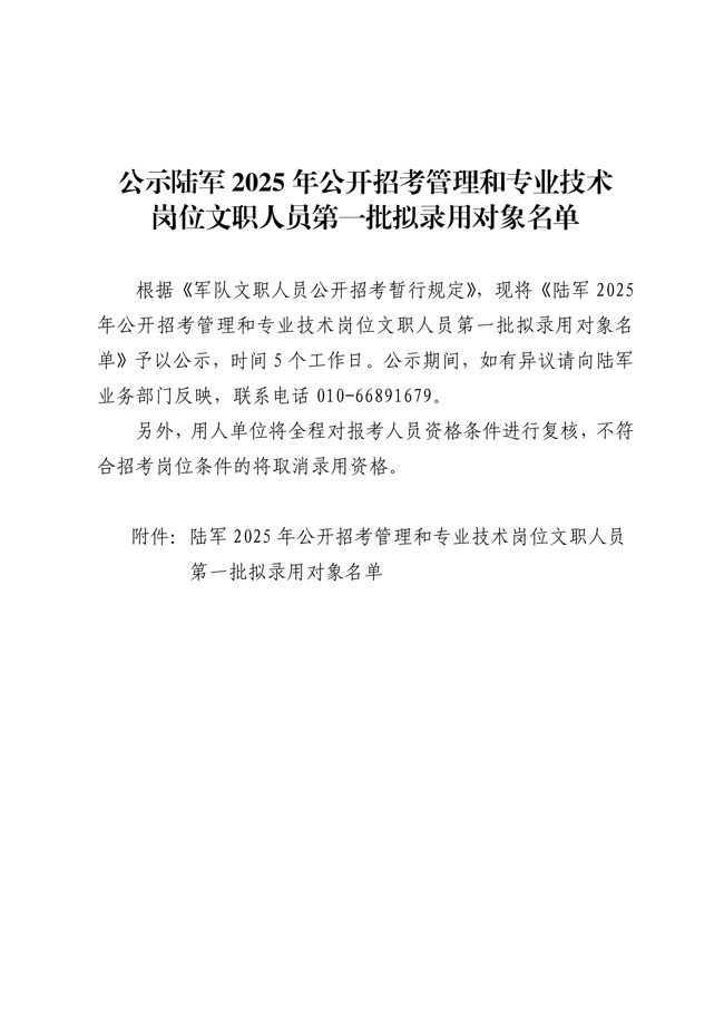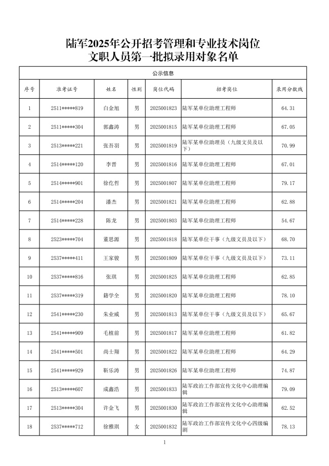 原文標(biāo)題:公示陸軍2025年公開招考管理和專業(yè)技術(shù)崗位文職人員第一批擬錄用對象名單