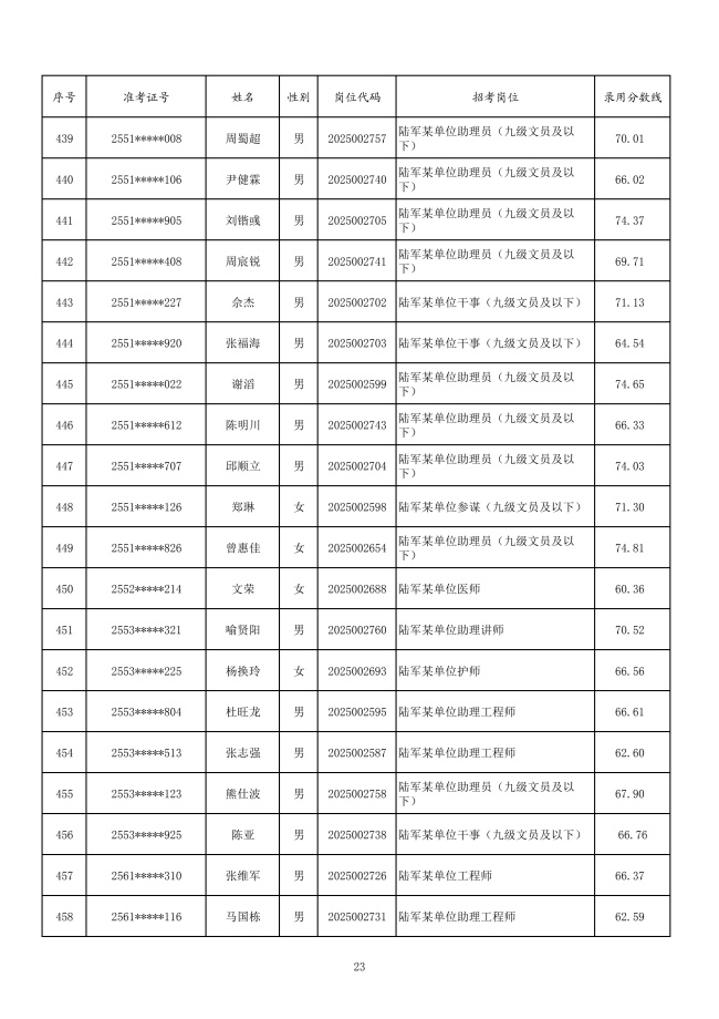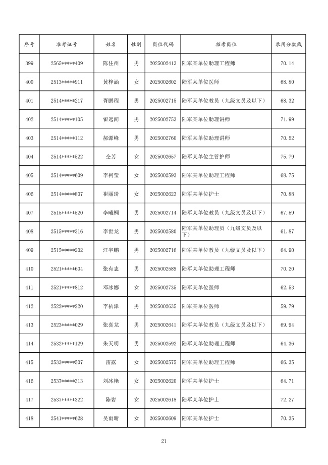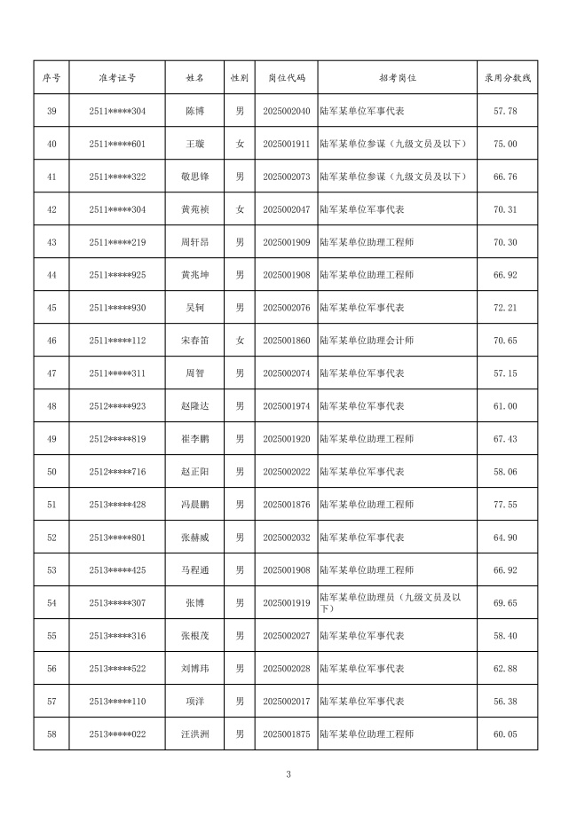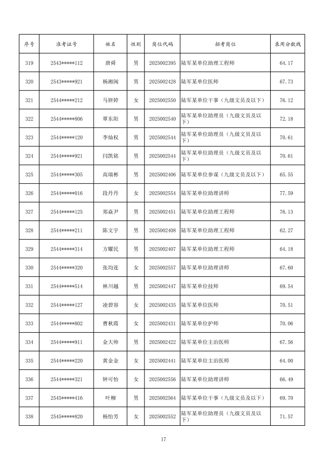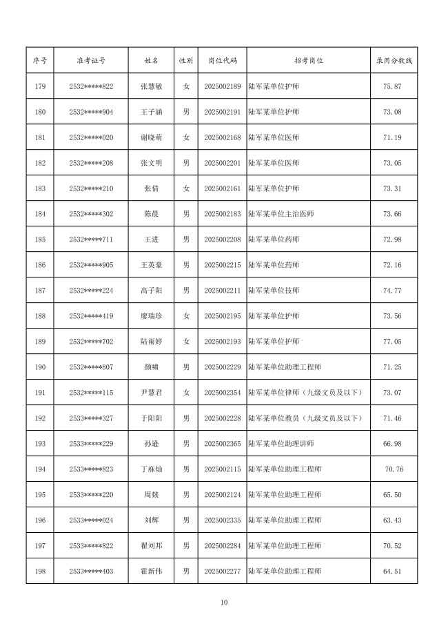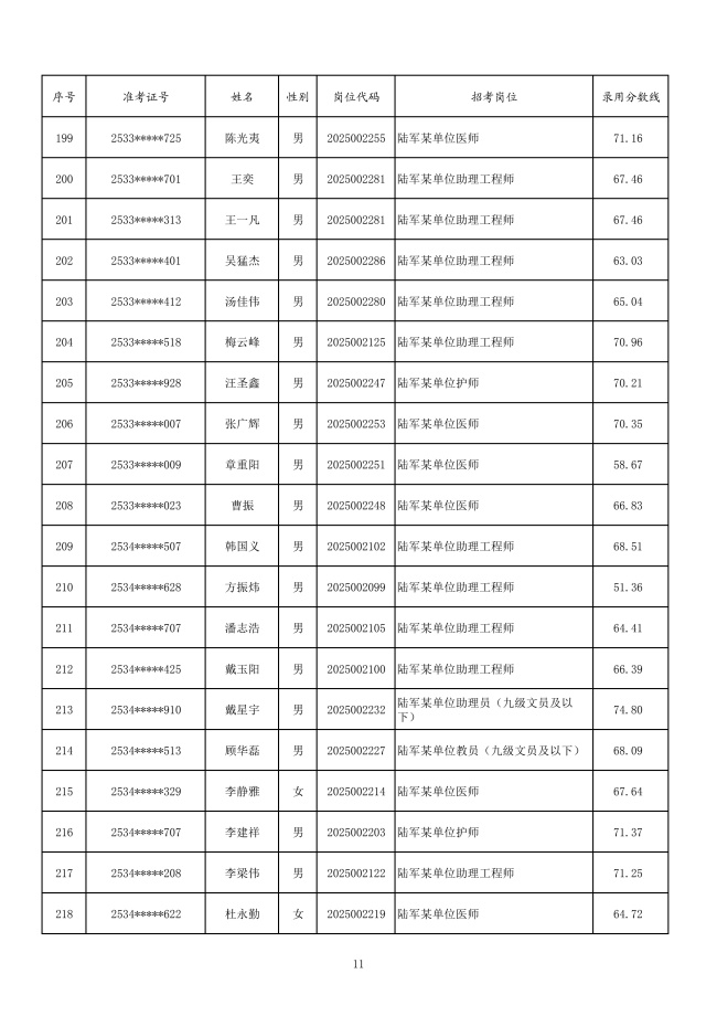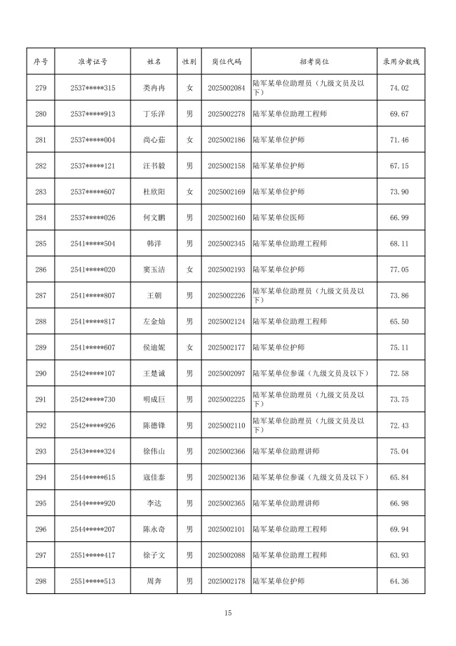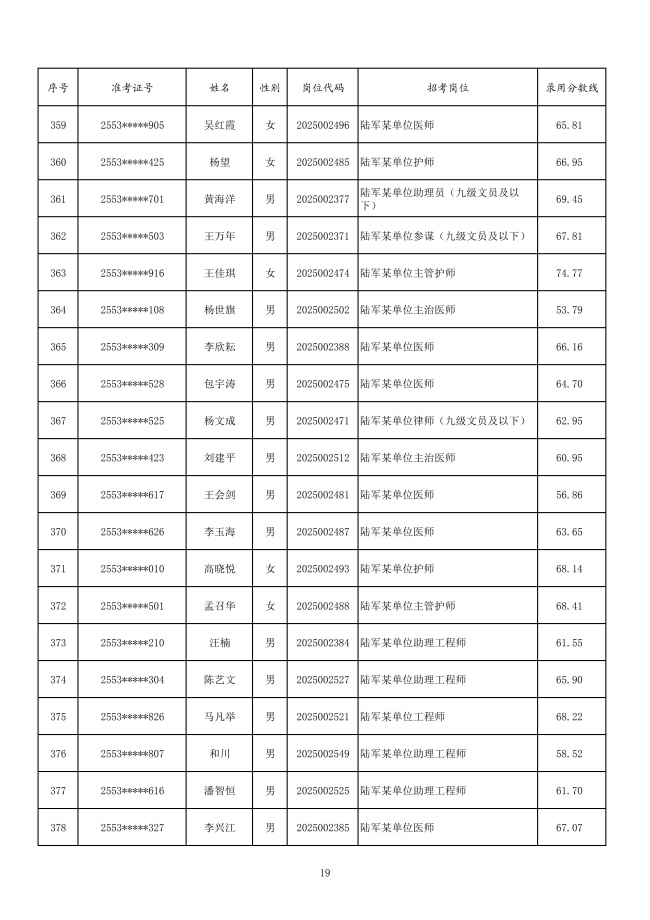 原文標(biāo)題:公示陸軍2025年公開招考管理和專業(yè)技術(shù)崗位文職人員第一批擬錄用對象名單