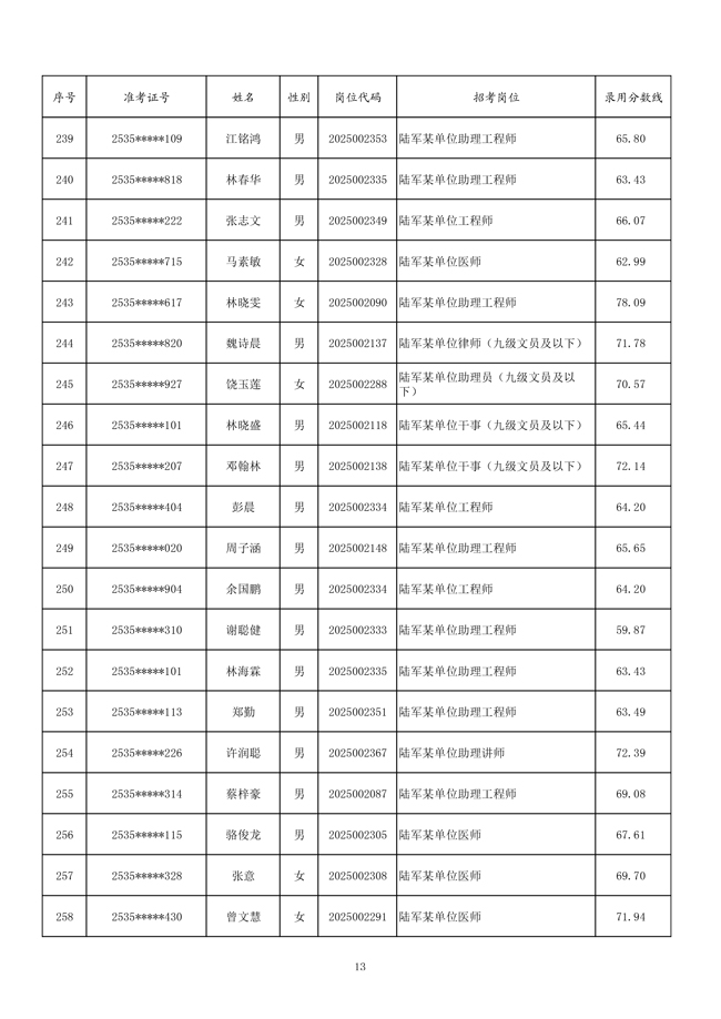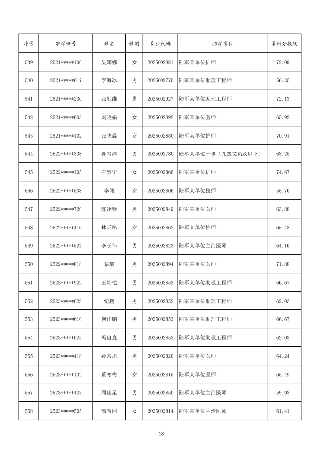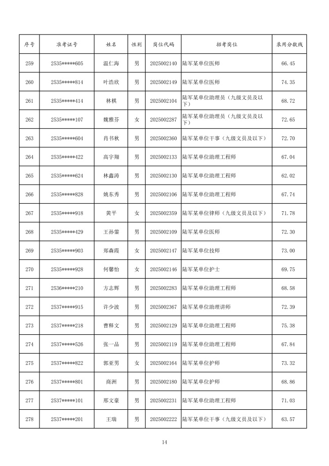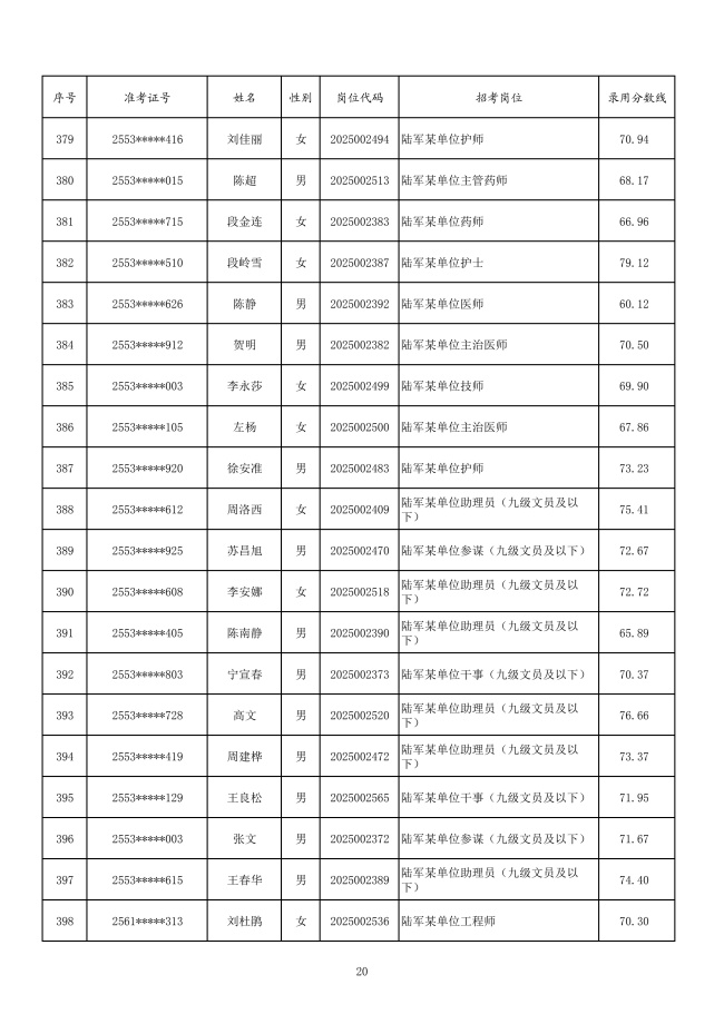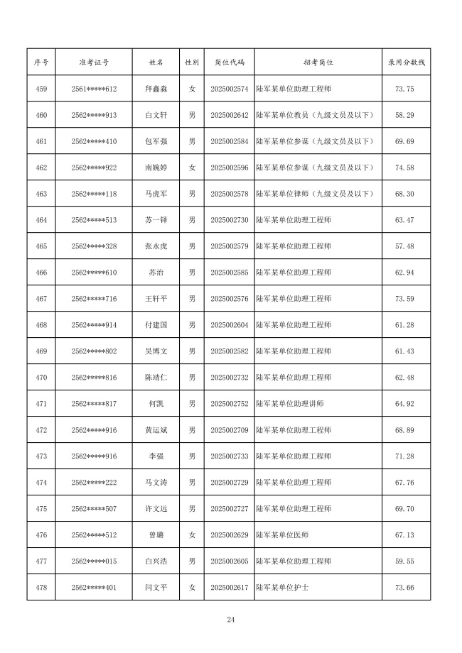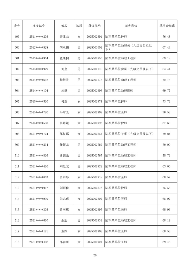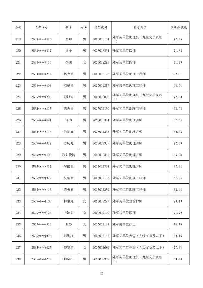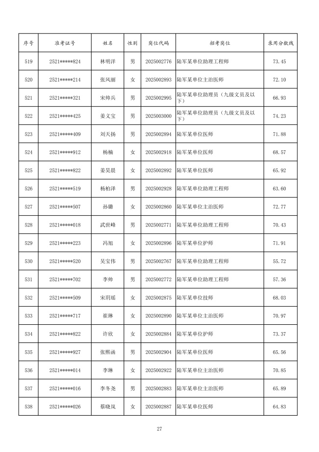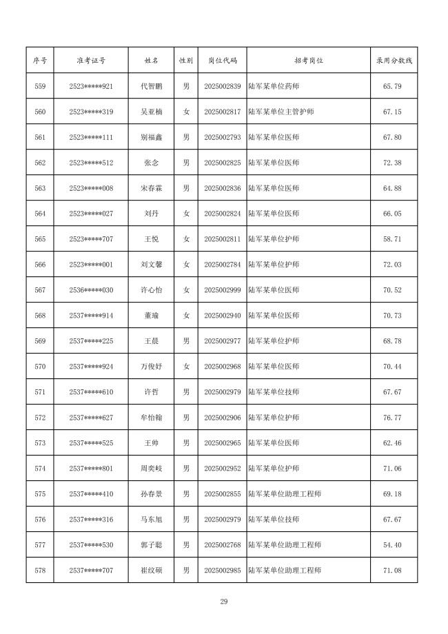 原文標(biāo)題:公示陸軍2025年公開招考管理和專業(yè)技術(shù)崗位文職人員第一批擬錄用對象名單