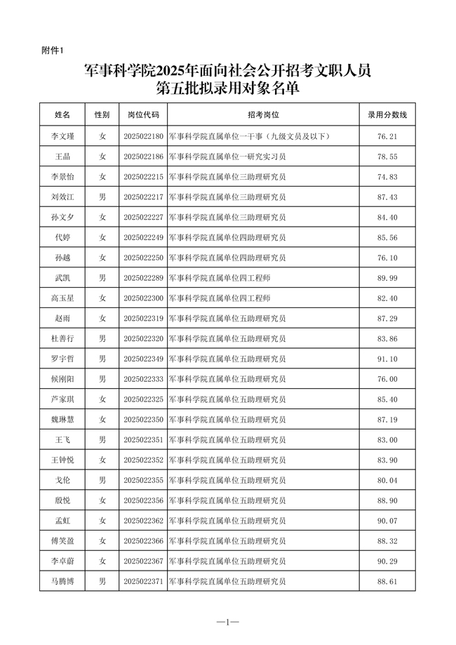 原文標題:公示軍事科學院2025年面向社會公開招考文職人員第五批擬錄用對象、補錄對象名單