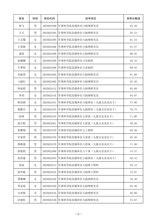 2025年軍隊文職擬錄用公示名單匯總 2025-09-22