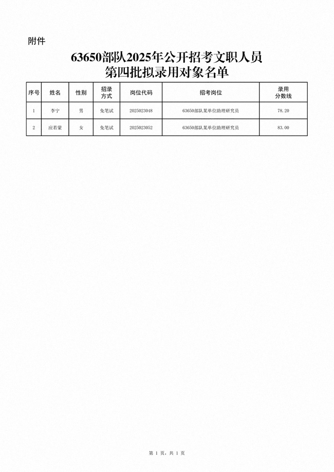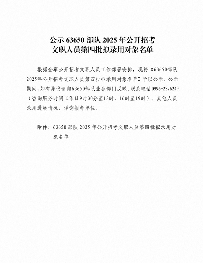 原文標(biāo)題:公示63650部隊(duì)2025年公開招考文職人員第四批擬錄用對(duì)象名單