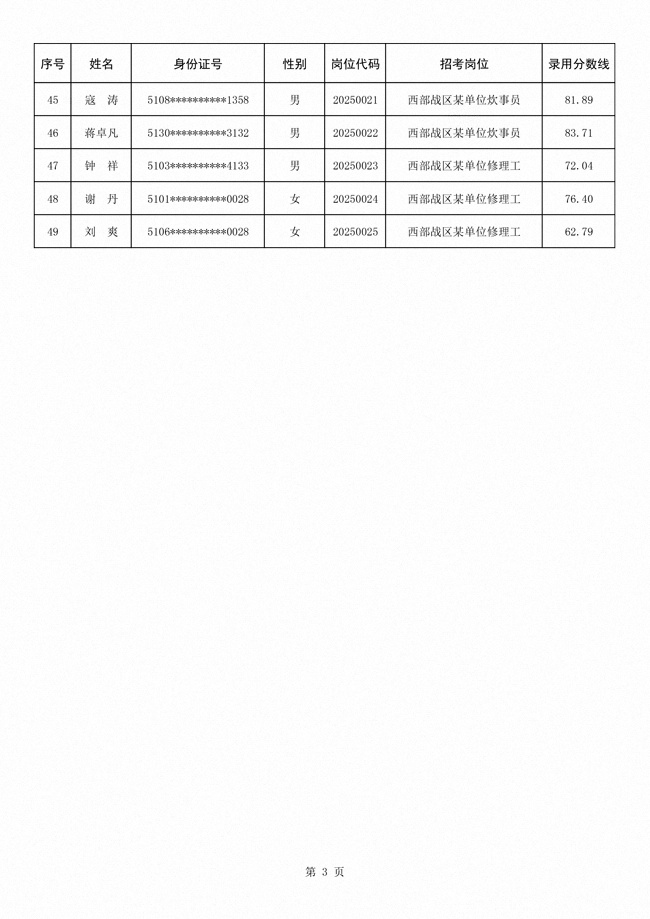 2025年武裝部文職人員擬錄用名單(含上岸分?jǐn)?shù)線) 2025-10-09