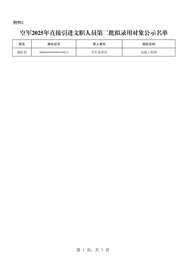 原文標題:公示2025年空軍文職人員公開招考第三批、直接引進第二批擬錄用對象名單