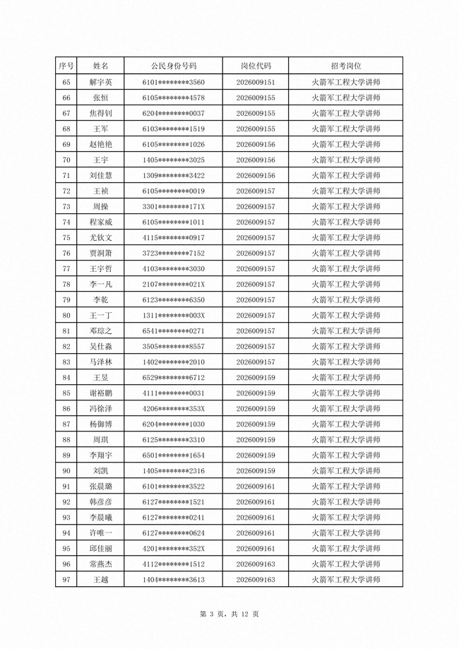 原文標(biāo)題:公布火箭軍2026年文職人員公開招考 免筆試直接參加面試人員名單