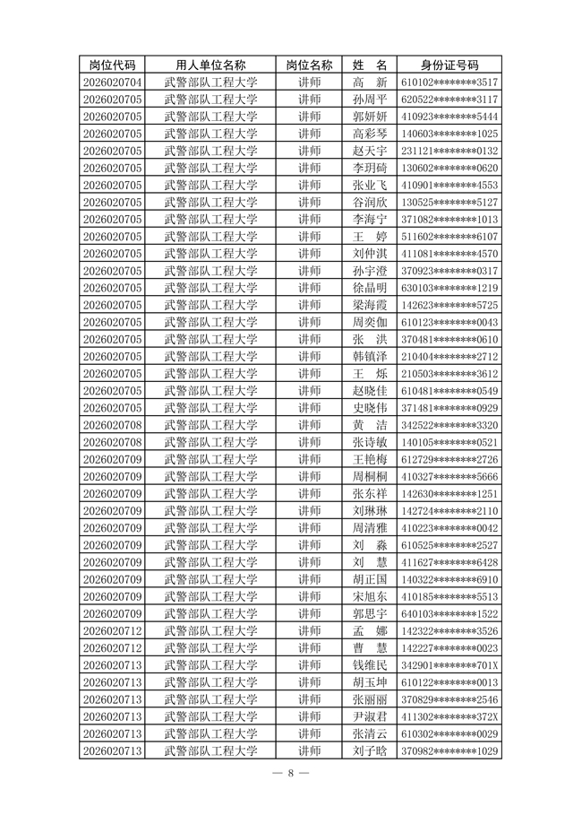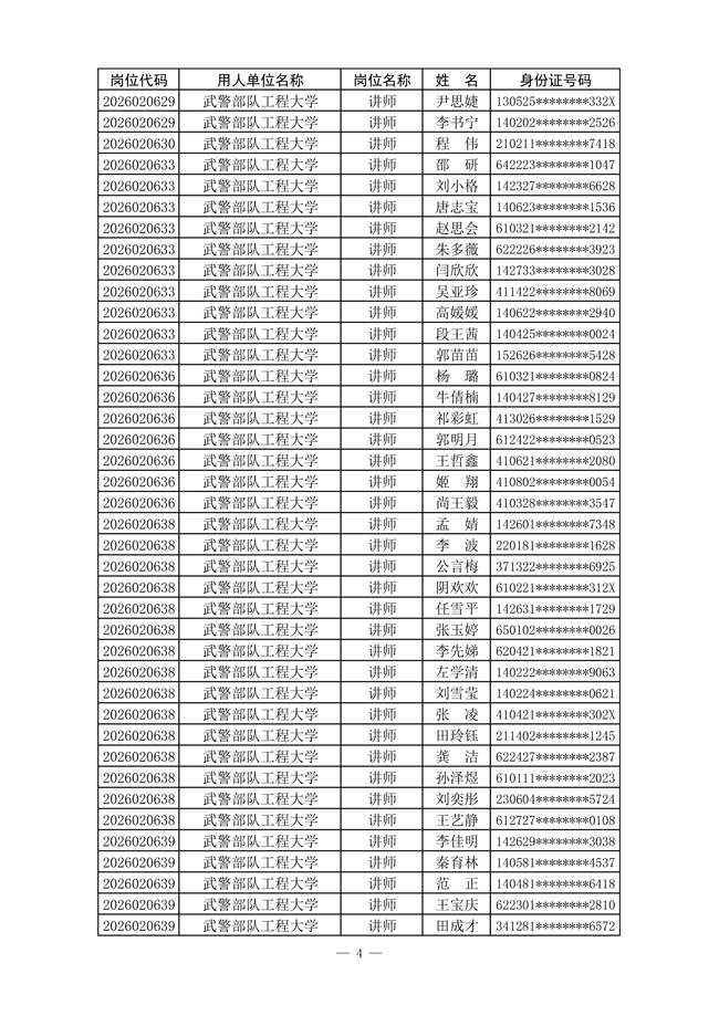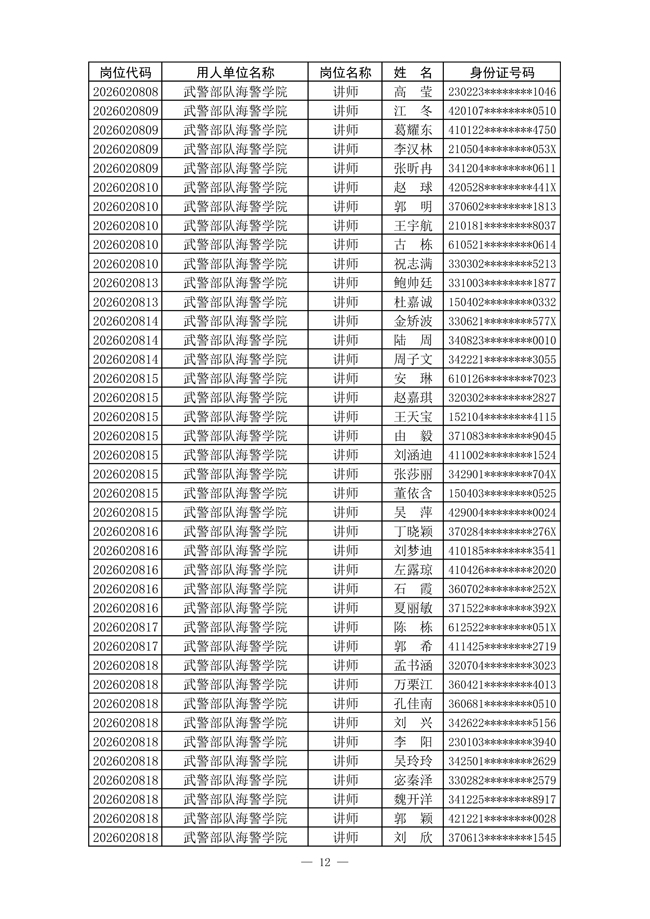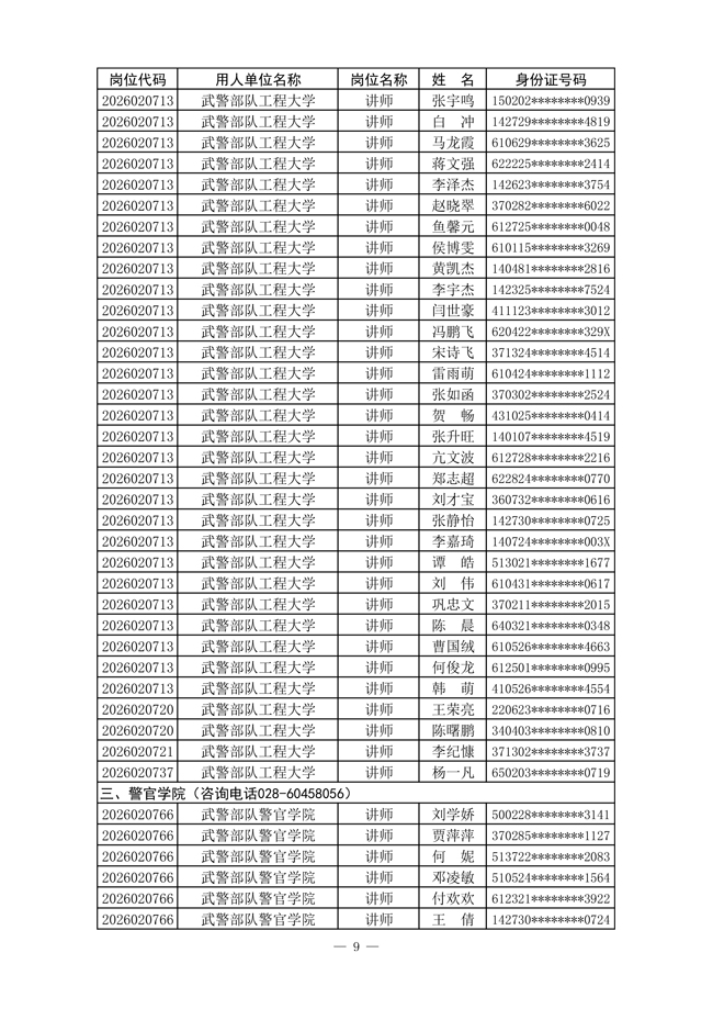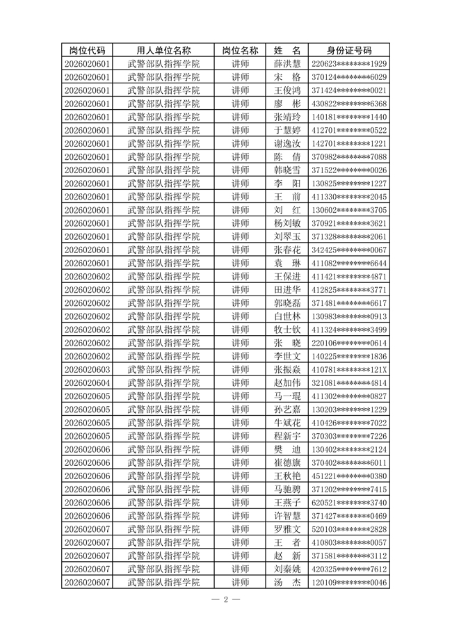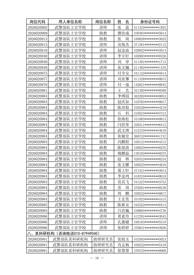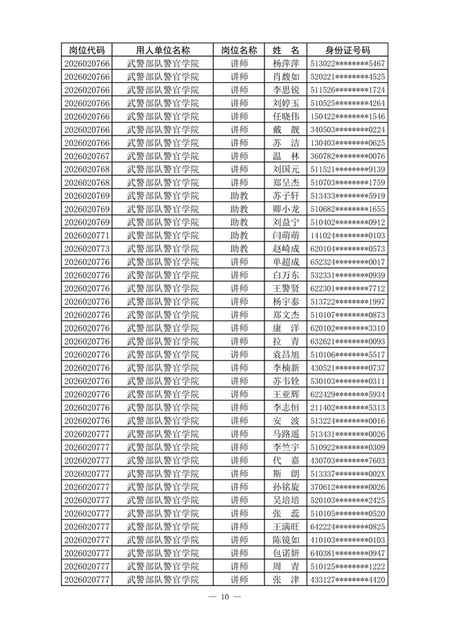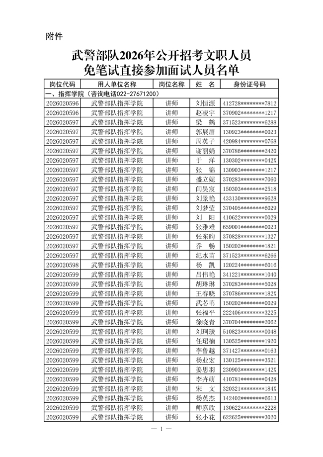 原文標題:公布武警部隊2026年公開招考文職人員免筆試直接參加面試人員名單