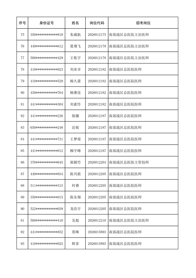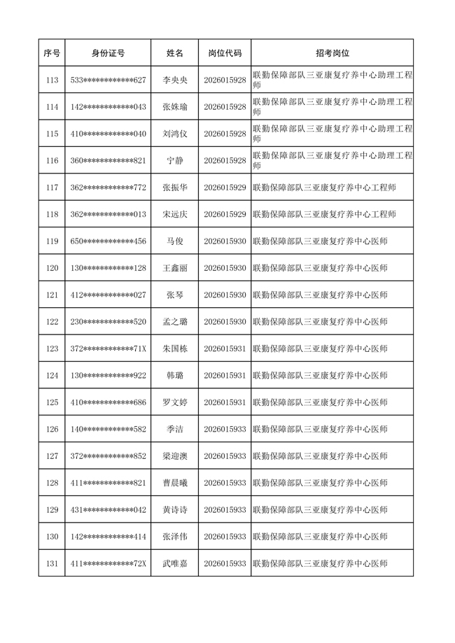 原文標(biāo)題:公布聯(lián)勤保障部隊(duì)2026年文職人員公開招考 第一批免筆試直接參加面試人員名單