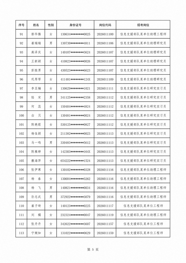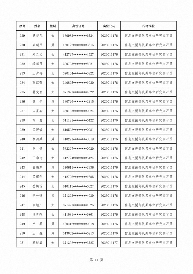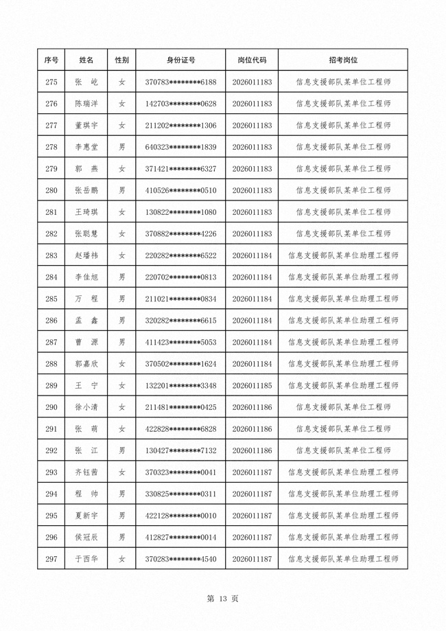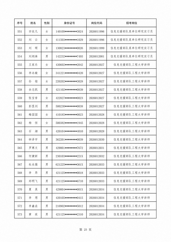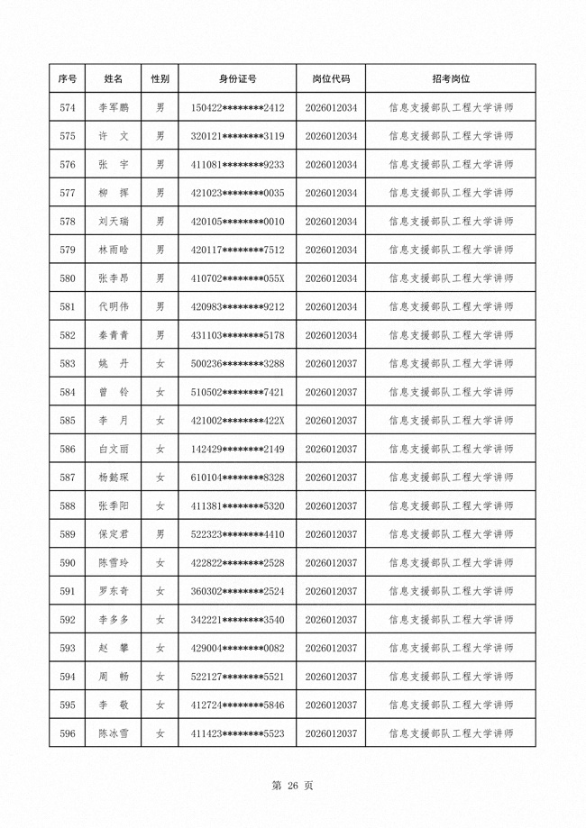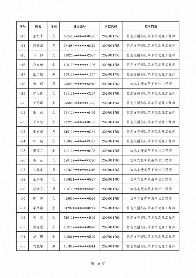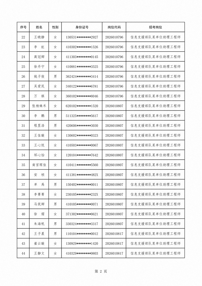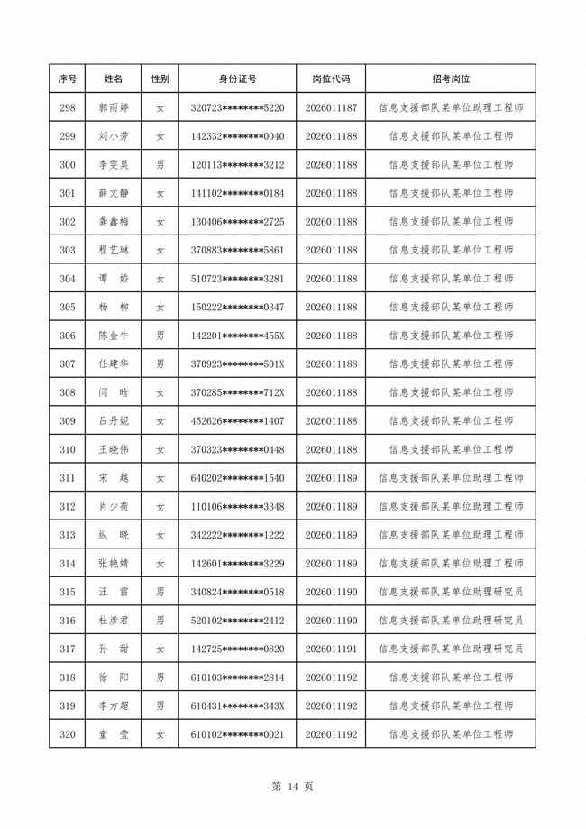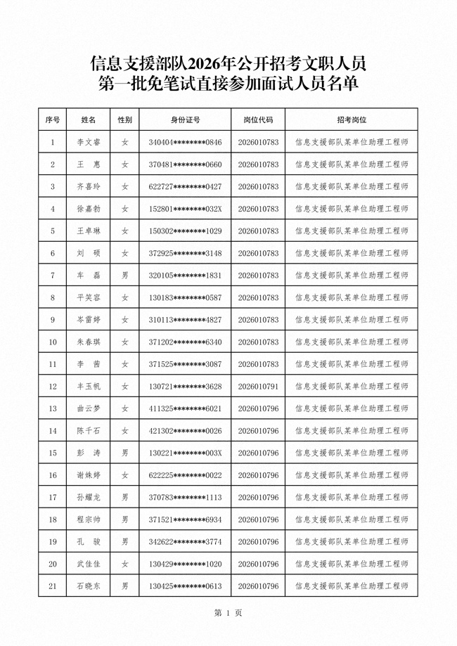 原文標(biāo)題:公布信息支援部隊2026年公開招考文職人員 第一批免筆試直接參加面試人員名單