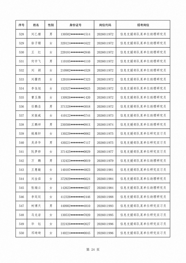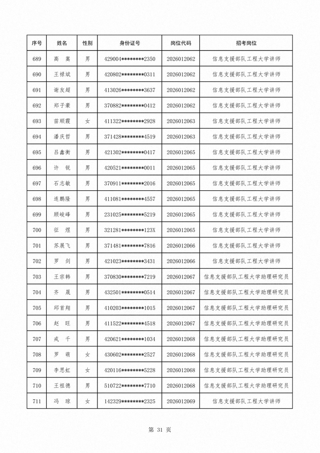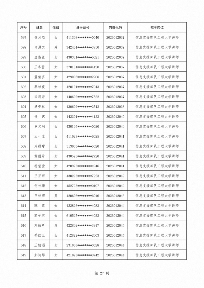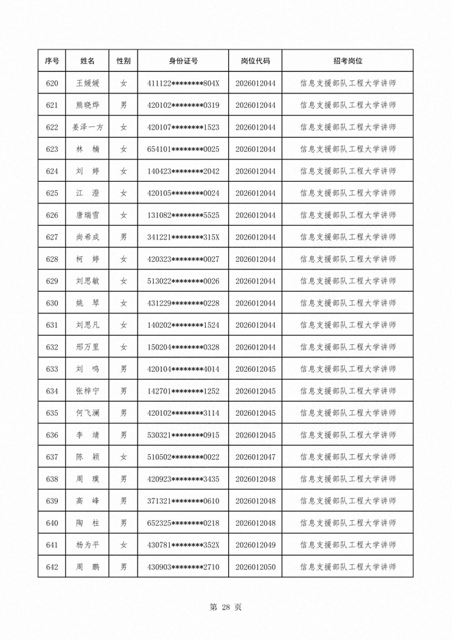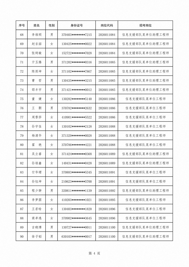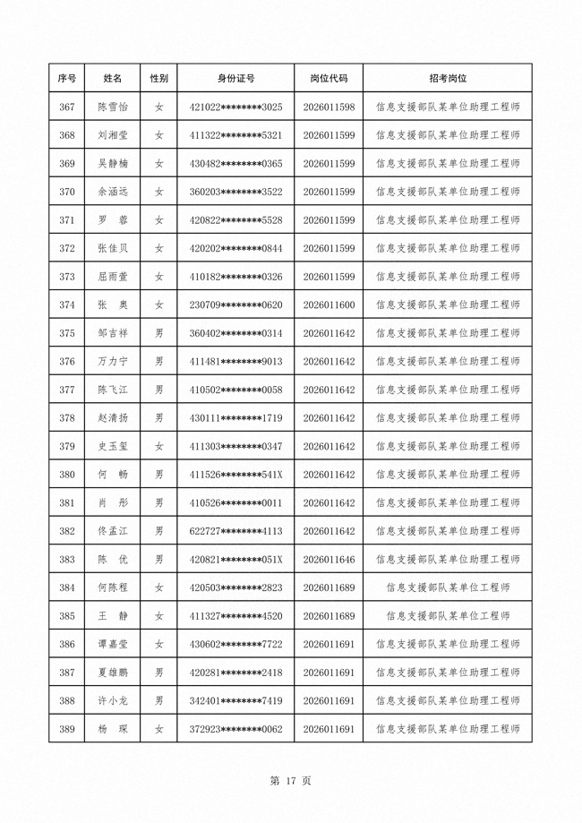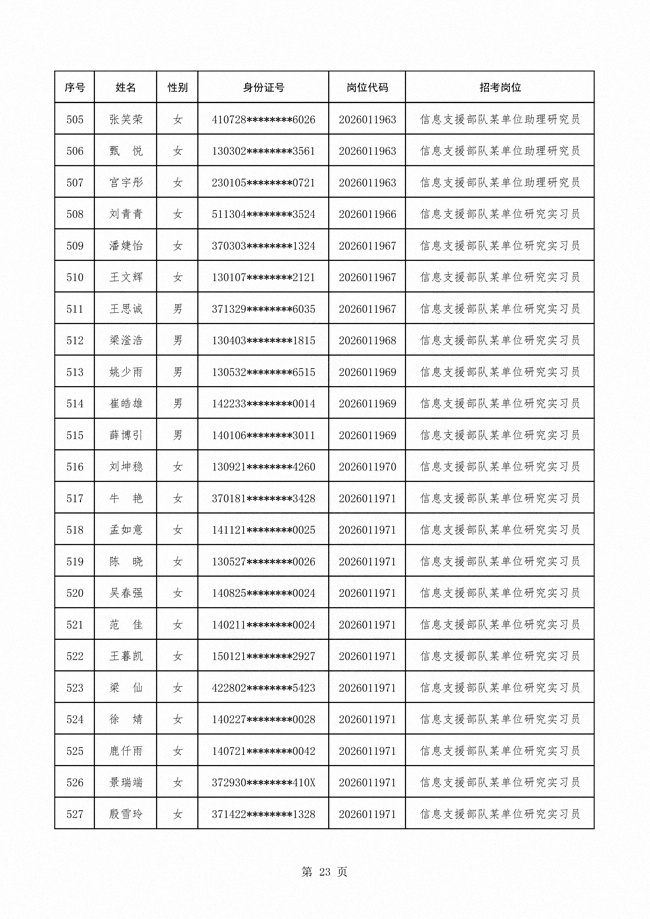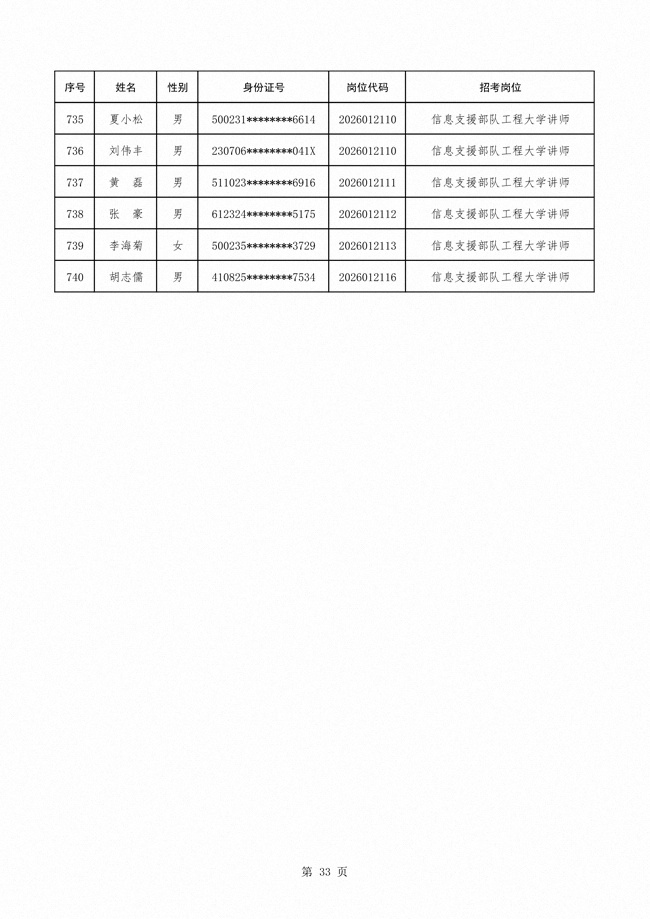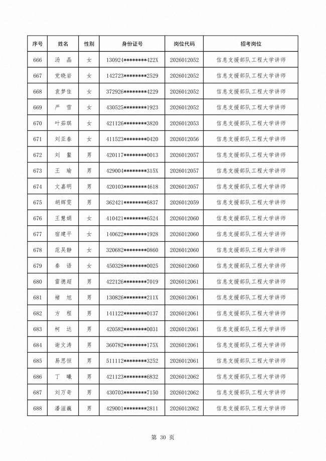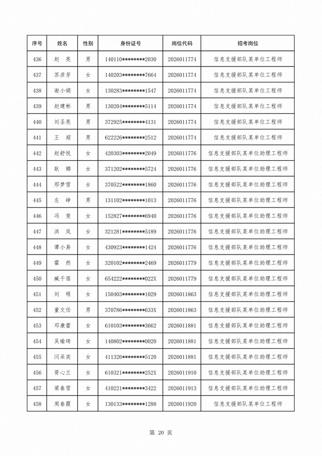原文標(biāo)題:公布信息支援部隊2026年公開招考文職人員 第一批免筆試直接參加面試人員名單